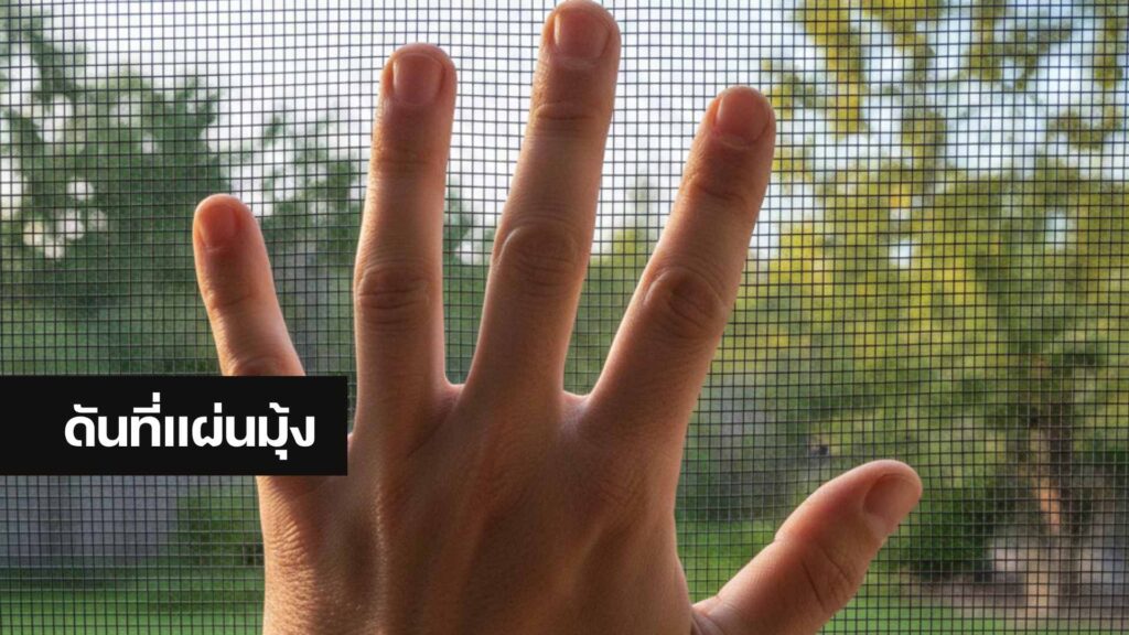 1. ดันที่แผ่นมุ้ง แทนที่จะจับกรอบบาน